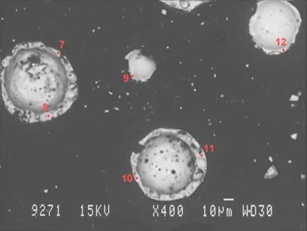 Figure 1. Backscattered electron image showing coal fly ash cenospheres.